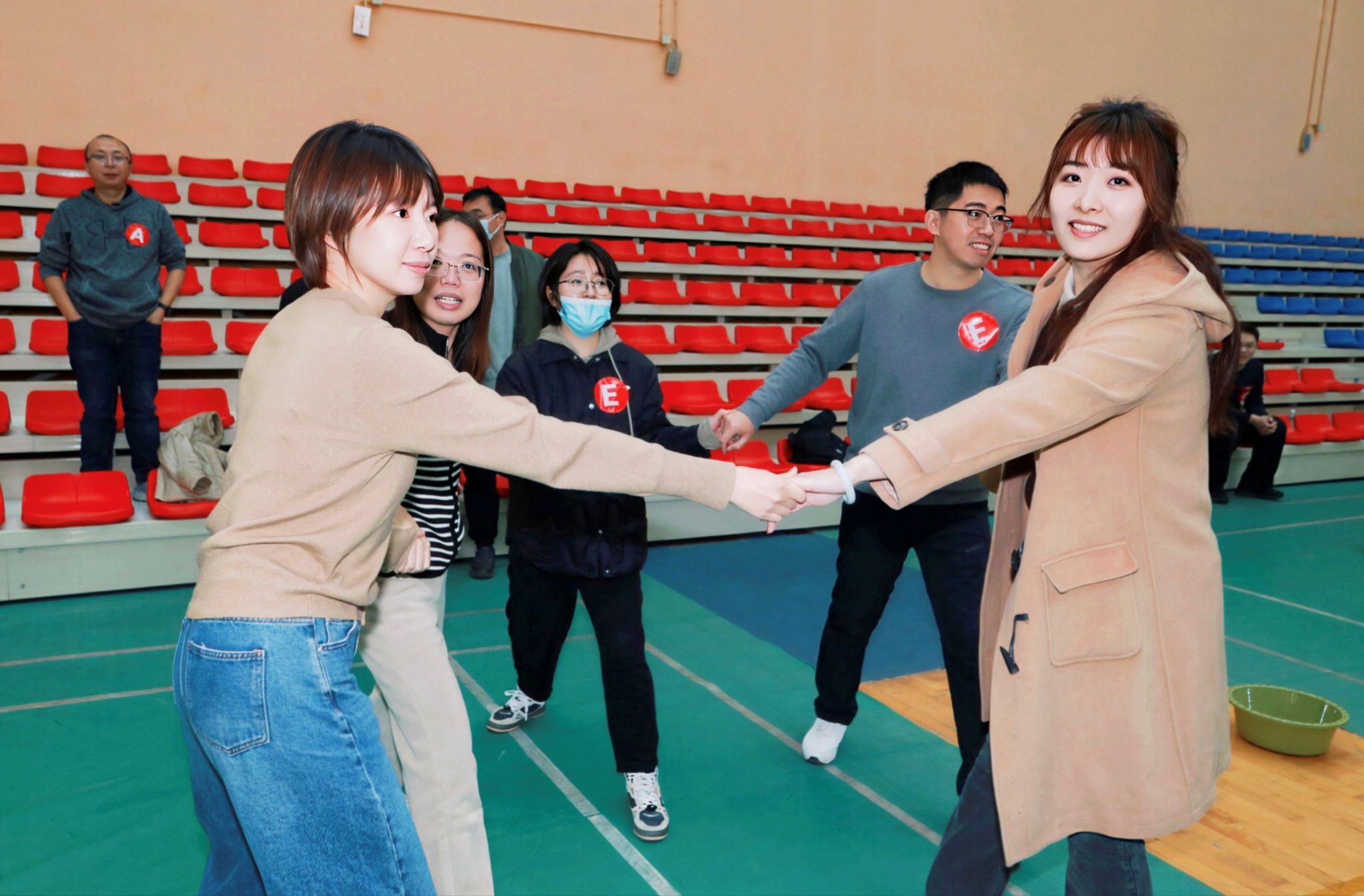 11月7日中午,由校工会主办、医疗器械学院工会承办的“沈阳药科大学‘工’字号文化建设年”系列活动之“凝心奔赴新发展 聚力开创新未来”工会干部素质拓展培训活动在南校区篮球馆顺利举行。校工会副主席王延风出席活动并致辞,医疗器械学院工会主席张斯雯主持。来自全校15个基层工会、9个教职工协会的百余名专兼职工会干部齐聚一堂,同场竞技、共话担当。
