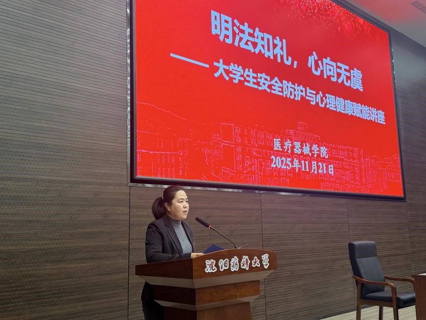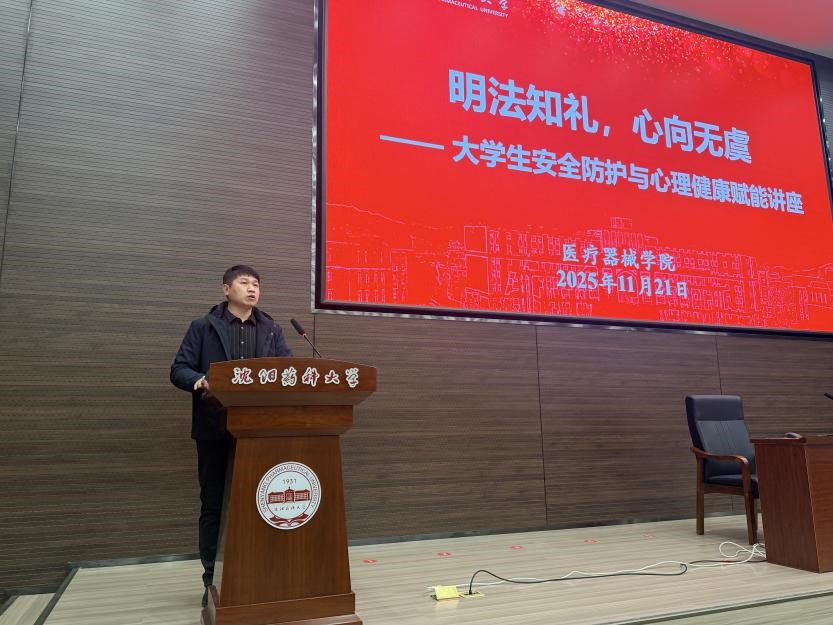为推进校园法治建设,筑牢师生安全防护底线,强化心理健康教育实效,11 19 日中午,医疗器械学院医疗器械学院围绕“明法知礼,心向无虞”主题,开展普法安全教育专题讲座与校警合作座谈两项重点活动,以全方位、深层次的举措为师生成长保驾护航。