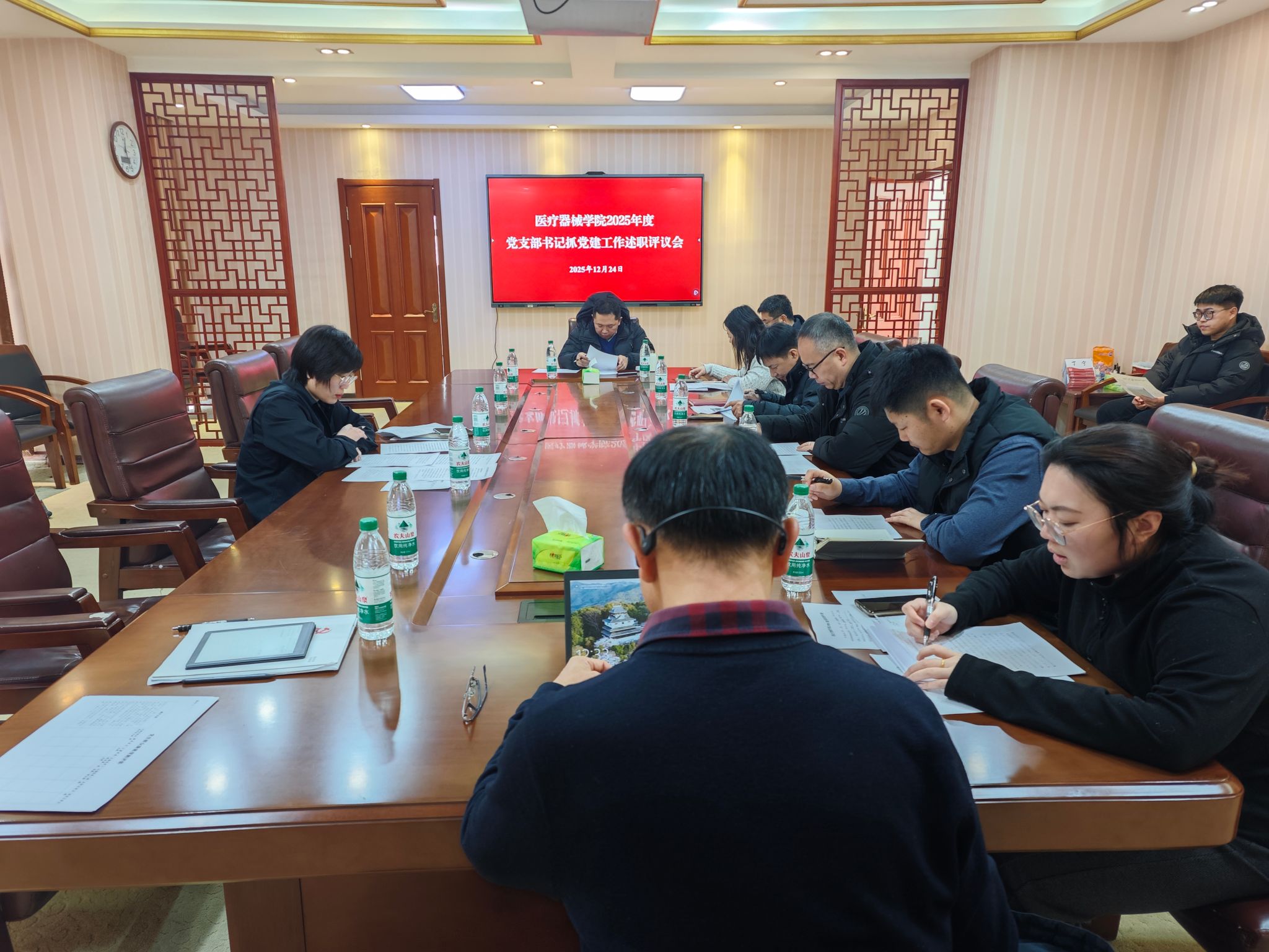 为深入贯彻落实全面从严治党要求,全面检验基层党建工作成效,进一步压实基层党组织书记抓党建第一责任人职责,根据学校党委统一部署,2025年12月24日,医疗器械学院党委召开2025年党支部书记抓党建工作述职评议会,学院2个学生党支部书记、5个教职工党支部书记依次进行现场述职。学院党委委员、部分教职工党员及学生党员代表参加会议。