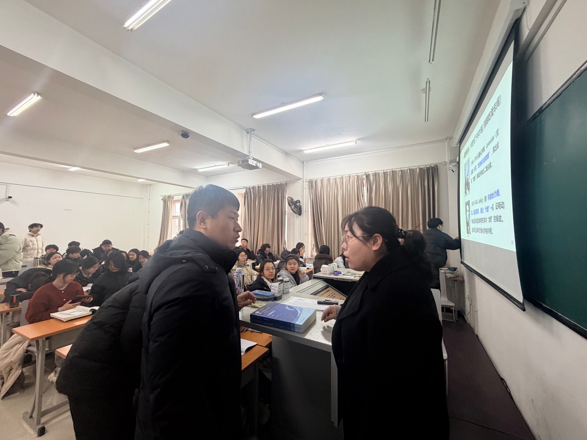 课堂上,教师们备课充分,精神饱满;学生们出勤率高,听课认真,课堂互动积极,教学秩序井然。课后,院领导与任课教师进行了简短交流,对教学方法改进、课堂氛围营造等提出了指导性意见。